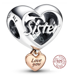 Charm Sterlingové stříbro 925 Srdce a nápis Miluji tě sestro - Love you Sister, korálek na náramek rodina