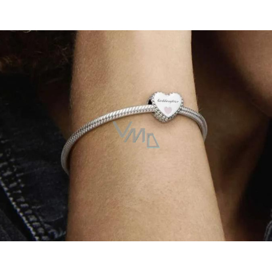 Charm Sterlingové stříbro 925 Srdce amulet ke křtinám - kmotřenka, korálek na náramek rodina