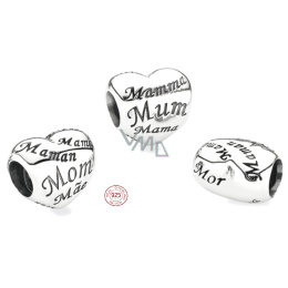 Charm Sterlingové stříbro 925 Srdce máma - symbol mateřství a rodinné lásky, korálek na náramek rodina