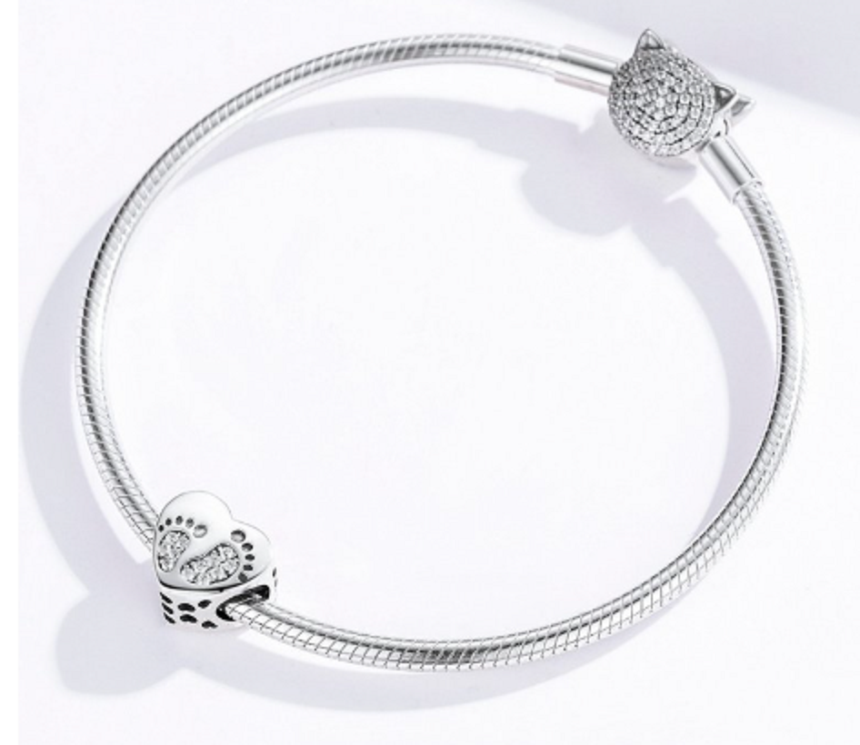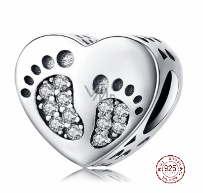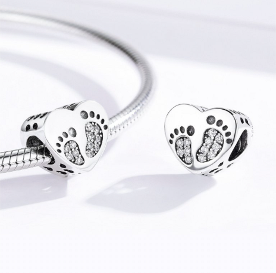 Charm Sterlingové stříbro 925 Srdce otisk nožiček, korálek na náramek rodina