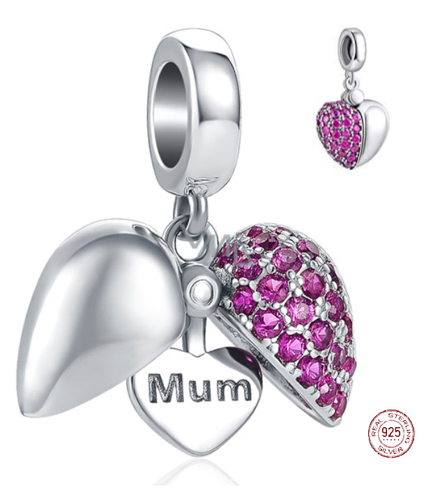 Charm Sterlingové stříbro 925 Srdce otvíratelné Mami miluji tě, přívěsek na náramek rodina