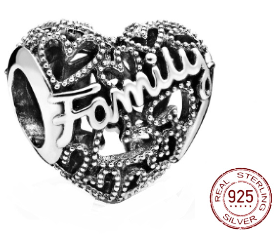 Charm Sterlingové stříbro 925 Srdce rodiny, korálek na náramek rodina