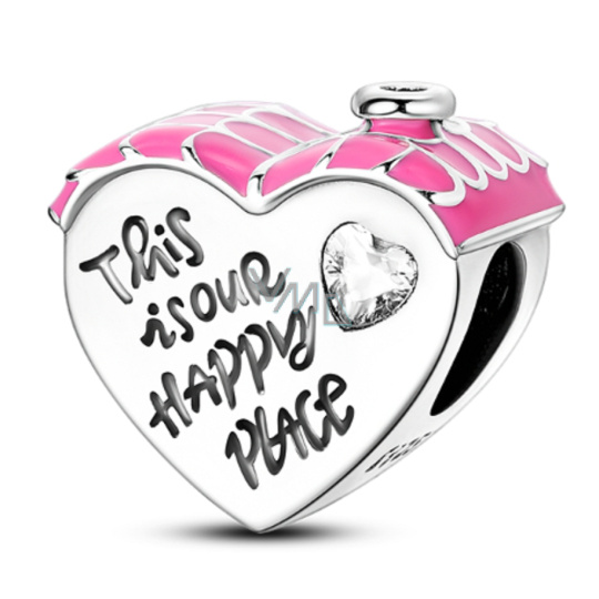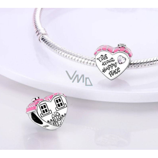 Charm Sterlingové stříbro 925 Domeček-srdce Toto je naše šťastné místo, korálek srdce na náramek rodina