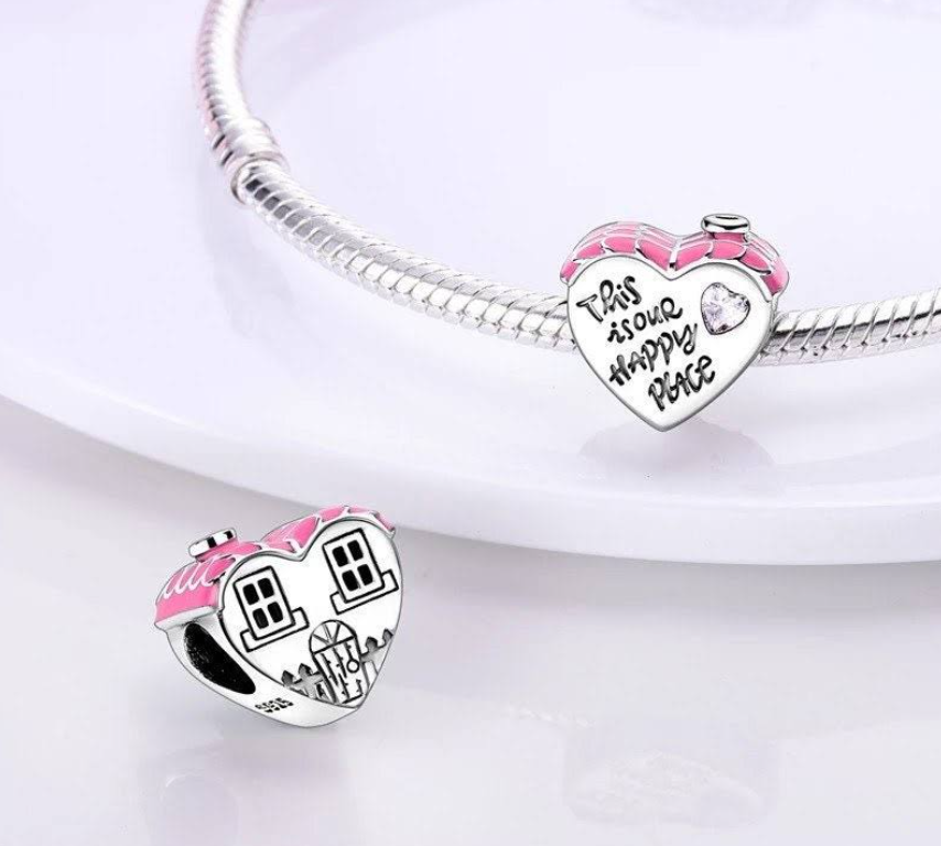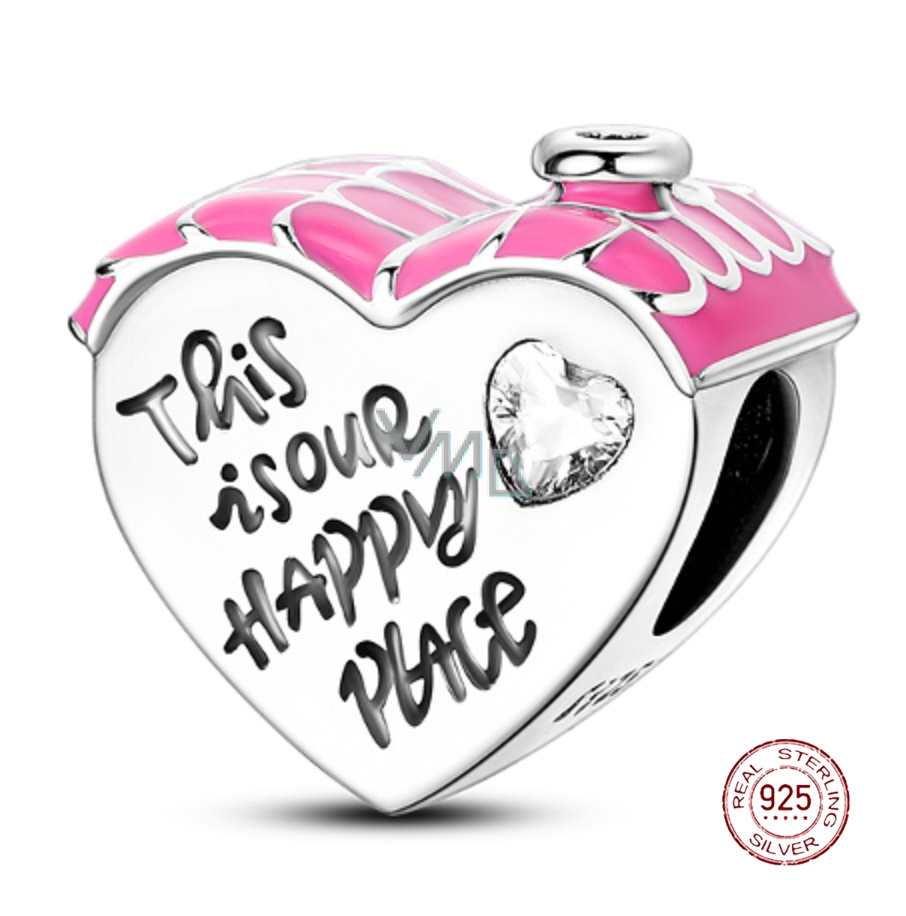 Charm Sterlingové stříbro 925 Domeček-srdce Toto je naše šťastné místo, korálek srdce na náramek rodina