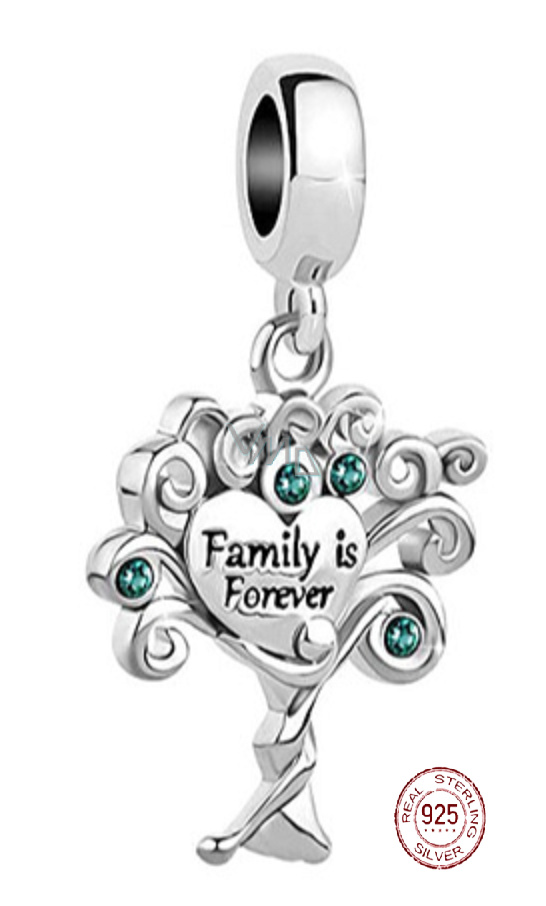 Charm Sterlingové stříbro 925 Strom Family is Forever, přívěsek na náramek rodina