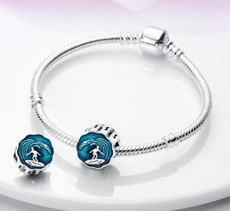 Krásný stříbrný přívěšek vhodný pro surfaře. Mějte na paměti, že korálky nejsou úplně identické v důsledku ruční práce. Tento okouzlující zlatý korálek je perfektním dárkem pro Vás i Vaše blízké. Objednejte nyní a vytvořte si vlastní nezapomenutelné okamžiky, které si budete připomínat celý život. Buďte originální, buďte jedinečná!