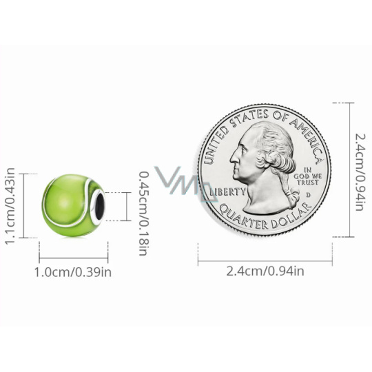 Charm Sterlingové stříbro 925 Tenisový míček, korálek na náramek sport