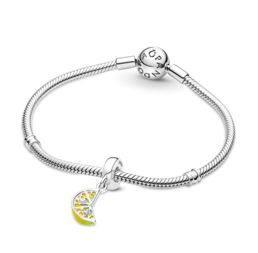 Charm Sterlingové stříbro 925 Třpytivé plátky citrónu, přívěsek na náramek, jídlo a pití