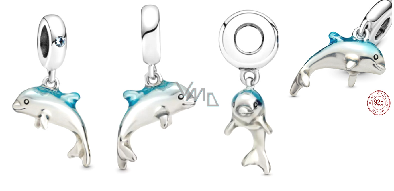Charm Sterlingové stříbro 925 Třpytivý delfín, přívěsek na náramek zvíře