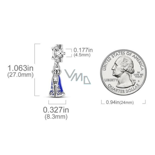 Charm Sterlingové stříbro 925 Náboženská kouzla Nossa Senhora Aparacida, přívěsek na náramek