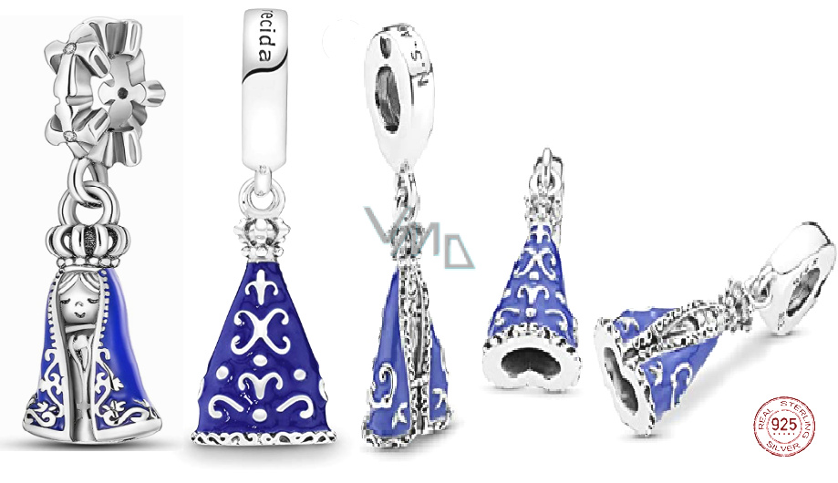 Charm Sterlingové stříbro 925 Náboženská kouzla Nossa Senhora Aparacida, přívěsek na náramek