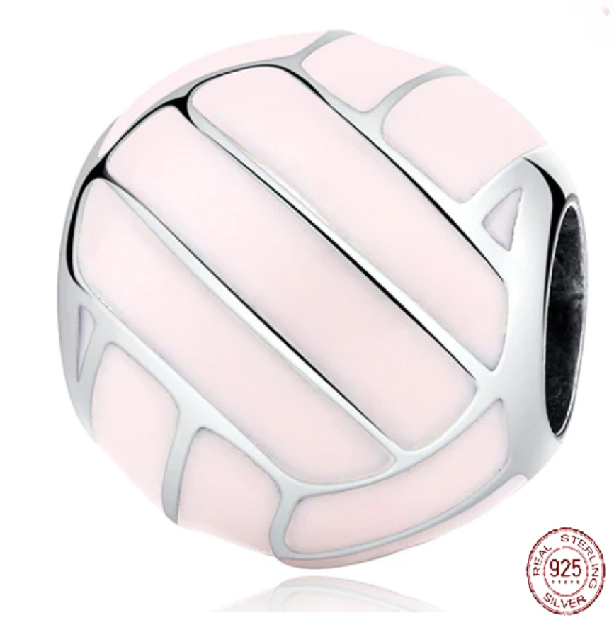 Charm Sterlingové stříbro 925 Volejbalový míč - růžový, korálek na náramek sport