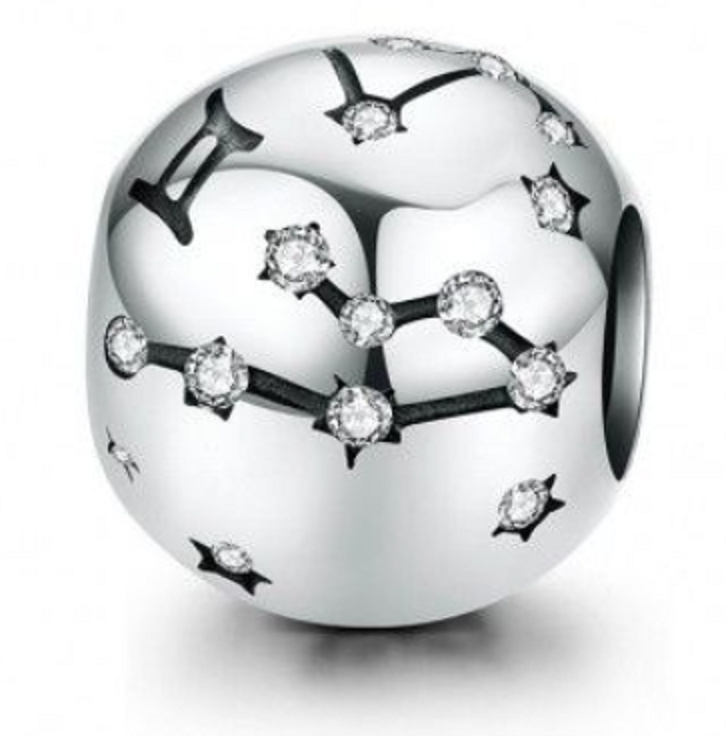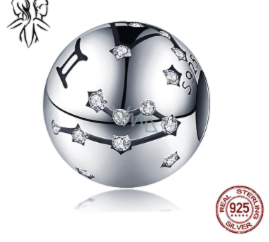 Charm Sterlingové stříbro 925 znamení zvěrokruhu Blíženci + zirkony, korálek na náramek 9 mm