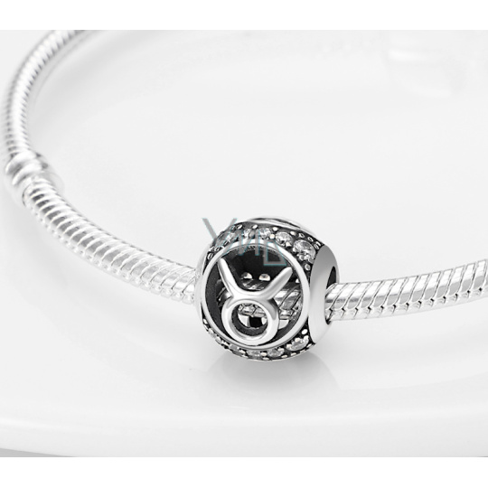 Charm Sterlingové stříbro 925 znamení zvěrokruhu Býk + zirkony, korálek na náramek