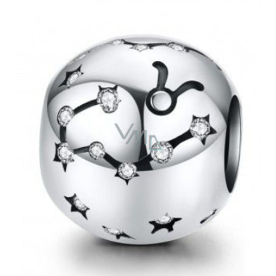 Charm Sterlingové stříbro 925 znamení zvěrokruhu Býk + zirkony, korálek na náramek 9 mm