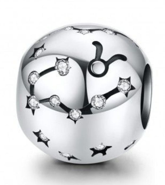 Charm Sterlingové stříbro 925 znamení zvěrokruhu Býk + zirkony, korálek na náramek 9 mm