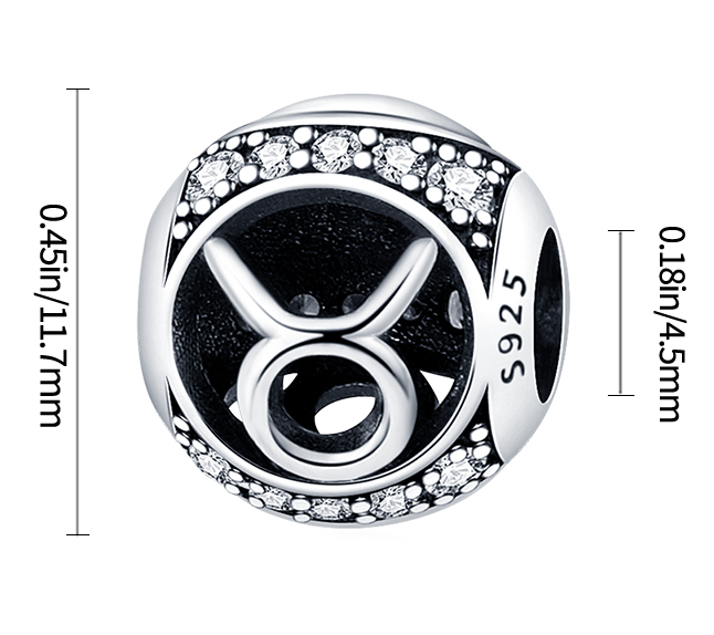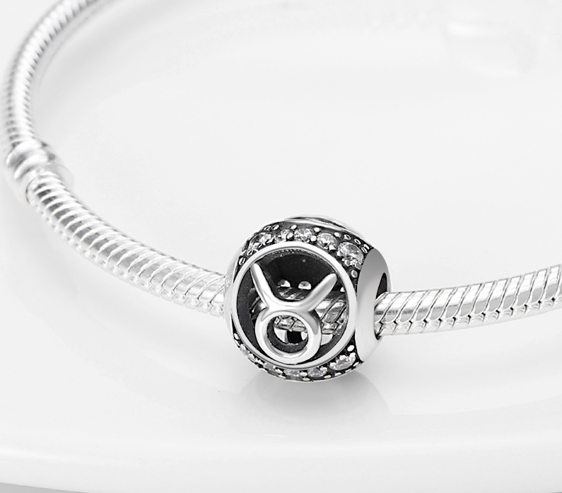 Charm Sterlingové stříbro 925 znamení zvěrokruhu Býk + zirkony, korálek na náramek