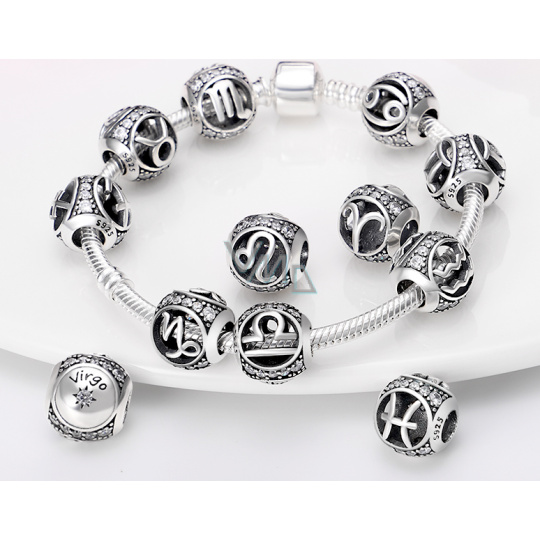 Znamení zvěrokruhu, krásný přívěsek ze stříbra se hodí ke všem náramkům Pandora, Tedora, Trollbeads nebo jiné náramky. Šperk, který je navlečen na náramek!