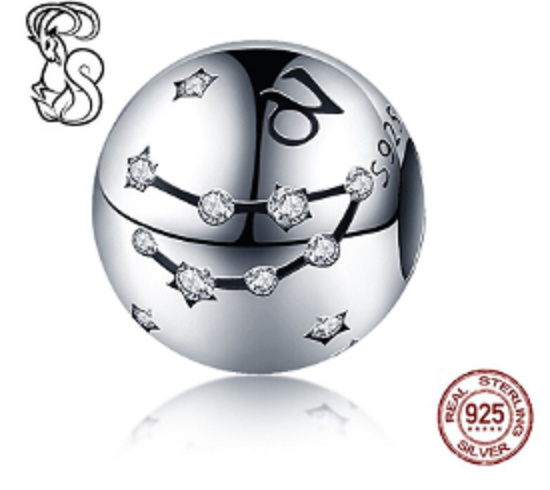 Charm Sterlingové stříbro 925 znamení zvěrokruhu Kozoroh + zirkony, korálek na náramek 9 mm