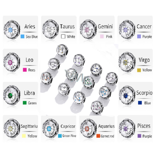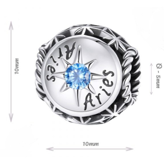 Charm Sterlingové stříbro 925 Znamení zvěrokruhu, kubické zirkonie Beran, korálek na náramek