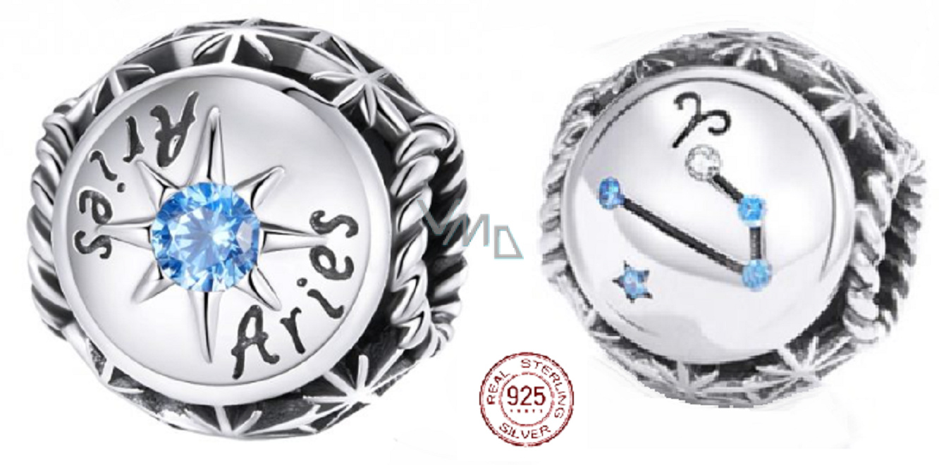 Charm Sterlingové stříbro 925 Znamení zvěrokruhu, kubické zirkonie Beran, korálek na náramek