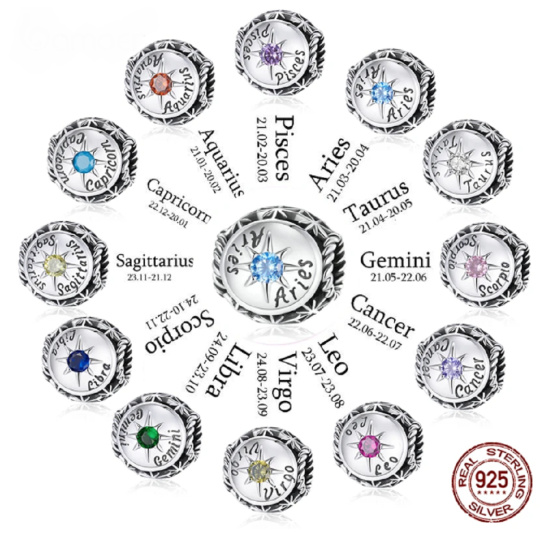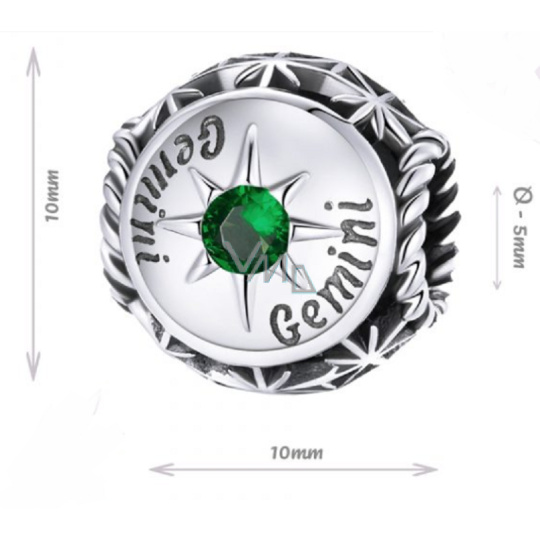Charm Sterlingové stříbro 925 Znamení zvěrokruhu, kubické zirkonie Blíženci, korálek na náramek