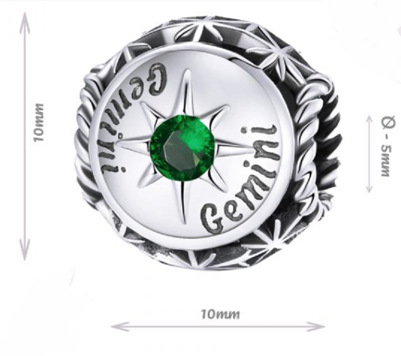 Charm Sterlingové stříbro 925 Znamení zvěrokruhu, kubické zirkonie Blíženci, korálek na náramek