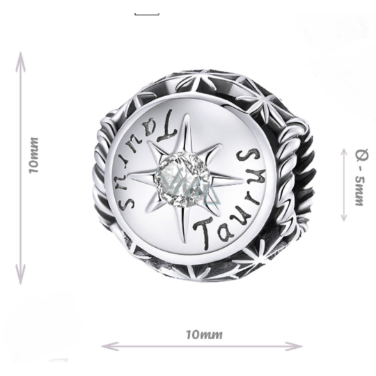 Charm Sterlingové stříbro 925 Znamení zvěrokruhu, kubické zirkonie Býk, korálek na náramek