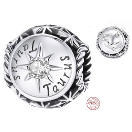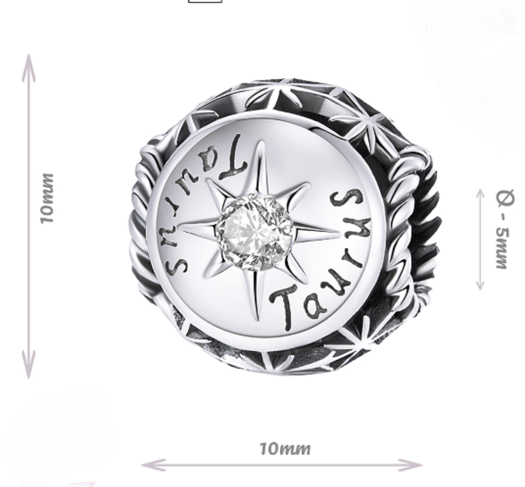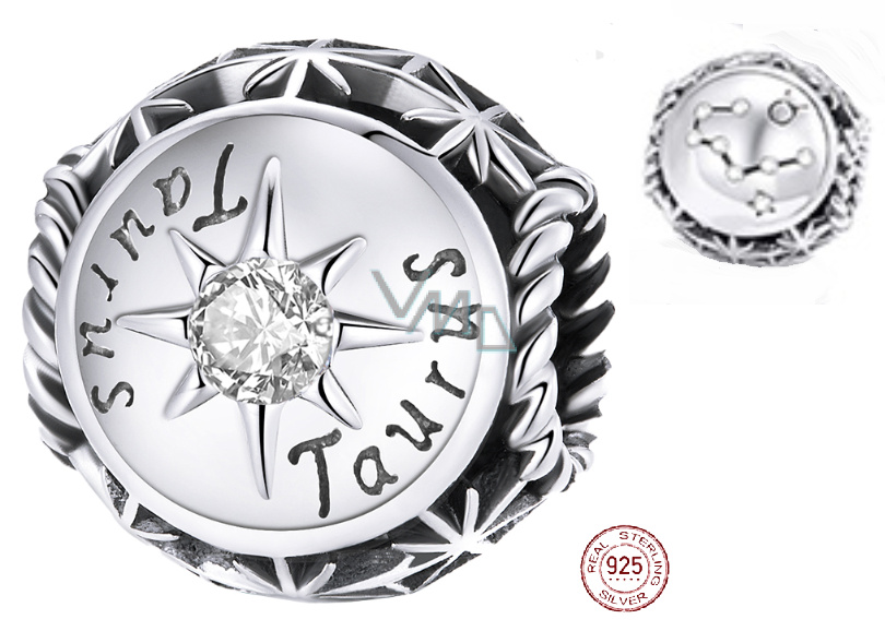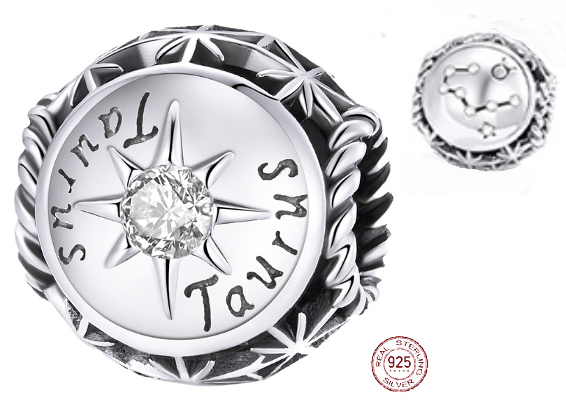 Charm Sterlingové stříbro 925 Znamení zvěrokruhu, kubické zirkonie Býk, korálek na náramek