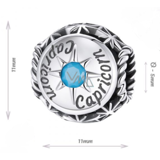 Charm Sterlingové stříbro 925 Znamení zvěrokruhu, kubické zirkonie Kozoroh, korálek na náramek