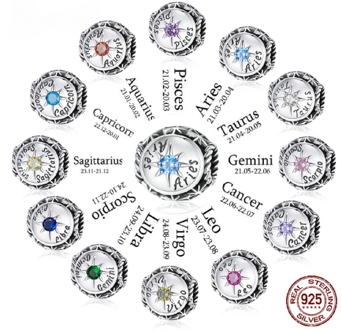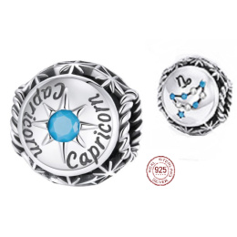 Charm Sterlingové stříbro 925 Znamení zvěrokruhu, kubické zirkonie Kozoroh, korálek na náramek