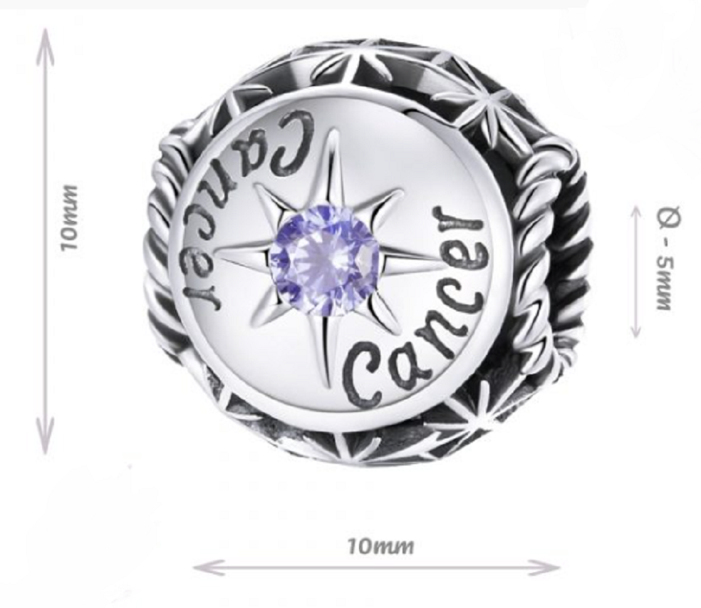 Charm Sterlingové stříbro 925 Znamení zvěrokruhu, kubické zirkonie Rak, korálek na náramek