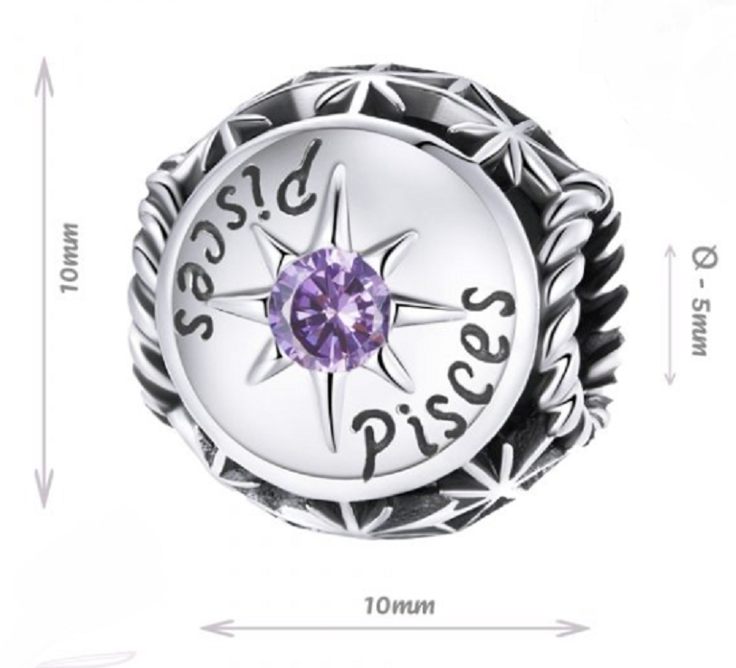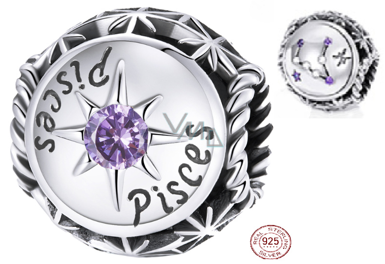 Charm Sterlingové stříbro 925 Znamení zvěrokruhu, kubické zirkonie Ryby, korálek na náramek