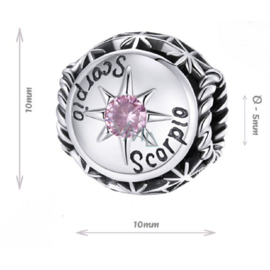 Charm Sterlingové stříbro 925 Znamení zvěrokruhu, kubické zirkonie Štír, korálek na náramek