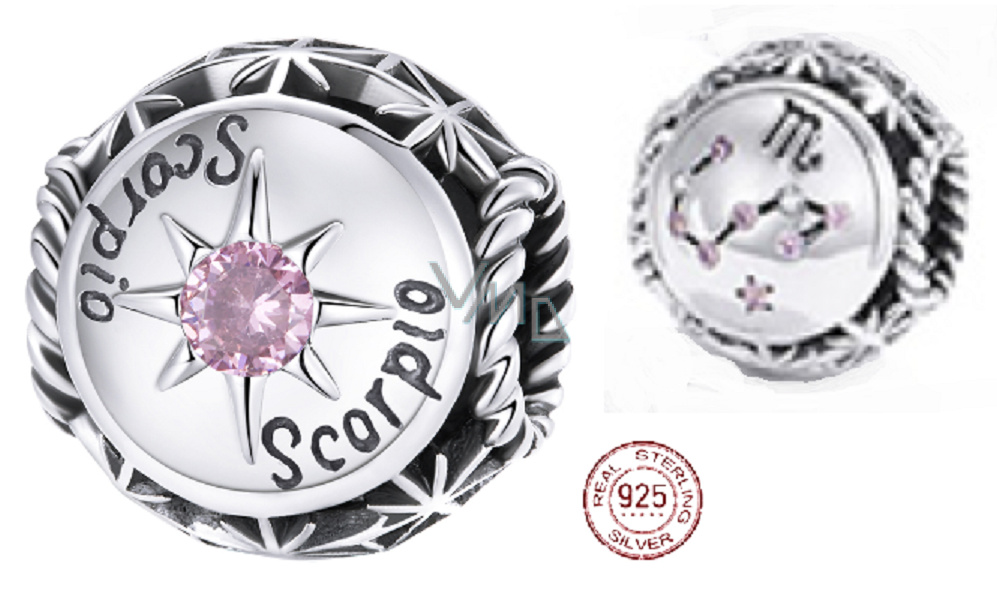 Charm Sterlingové stříbro 925 Znamení zvěrokruhu, kubické zirkonie Štír, korálek na náramek