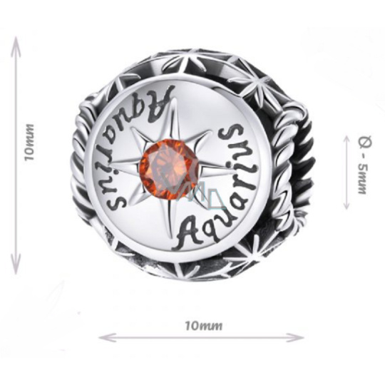 Charm Sterlingové stříbro 925 Znamení zvěrokruhu, kubické zirkonie Vodnář, korálek na náramek