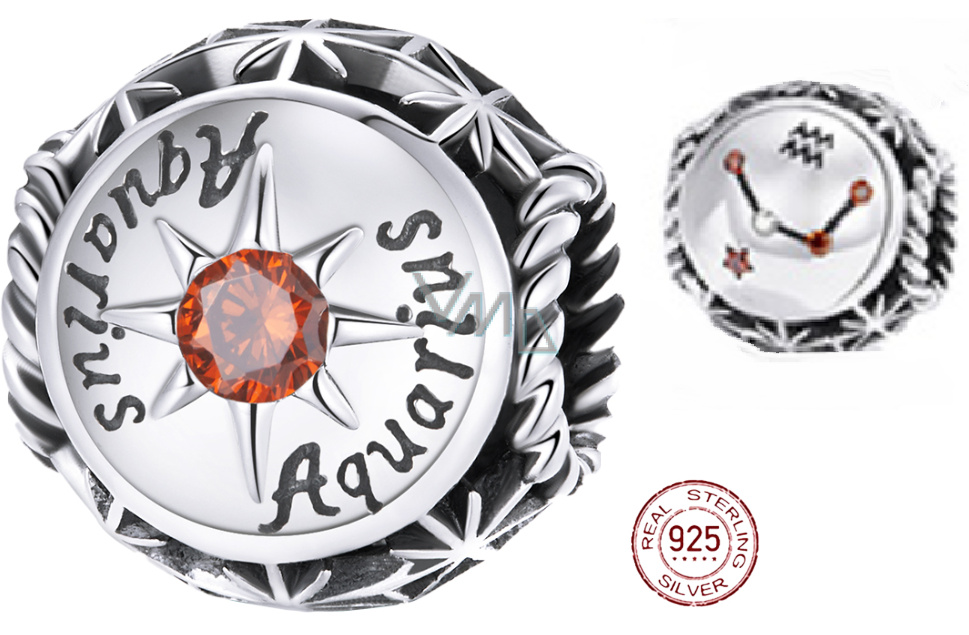 Charm Sterlingové stříbro 925 Znamení zvěrokruhu, kubické zirkonie Vodnář, korálek na náramek