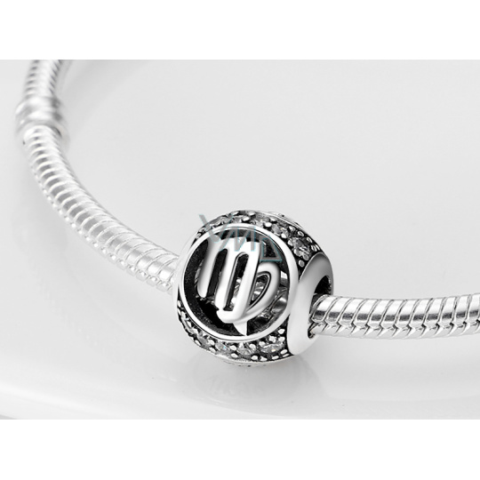 Charm Sterlingové stříbro 925 znamení zvěrokruhu Panna + zirkony, korálek na náramek