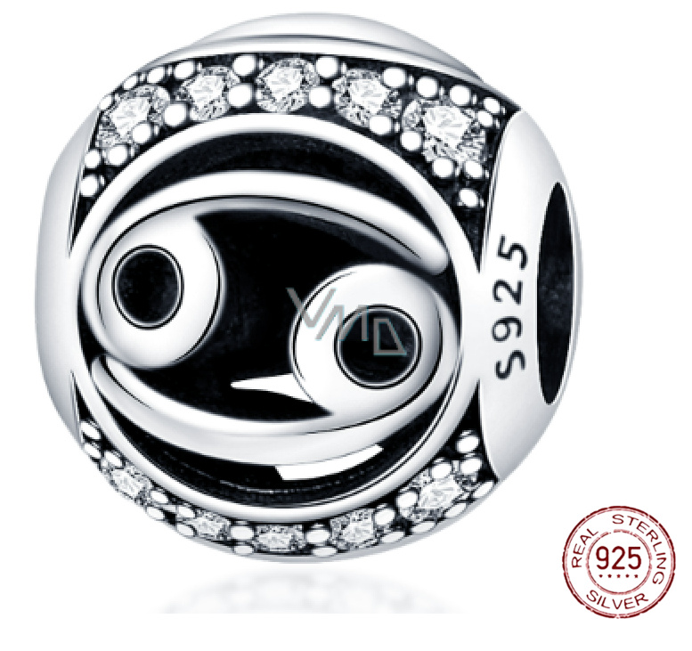 Charm Sterlingové stříbro 925 znamení zvěrokruhu Rak + zirkony, korálek na náramek