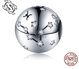 Charm Sterlingové stříbro 925 znamení zvěrokruhu Ryby + zirkony, korálek na náramek 9 mm