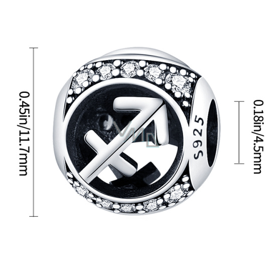 Charm Sterlingové stříbro 925 znamení zvěrokruhu Střelec + zirkony, korálek na náramek