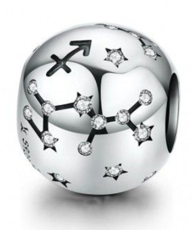 Charm Sterlingové stříbro 925 znamení zvěrokruhu Střelec + zirkony, korálek na náramek 9 mm