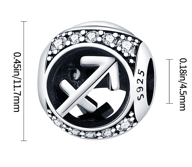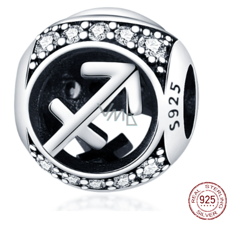 Charm Sterlingové stříbro 925 znamení zvěrokruhu Střelec + zirkony, korálek na náramek