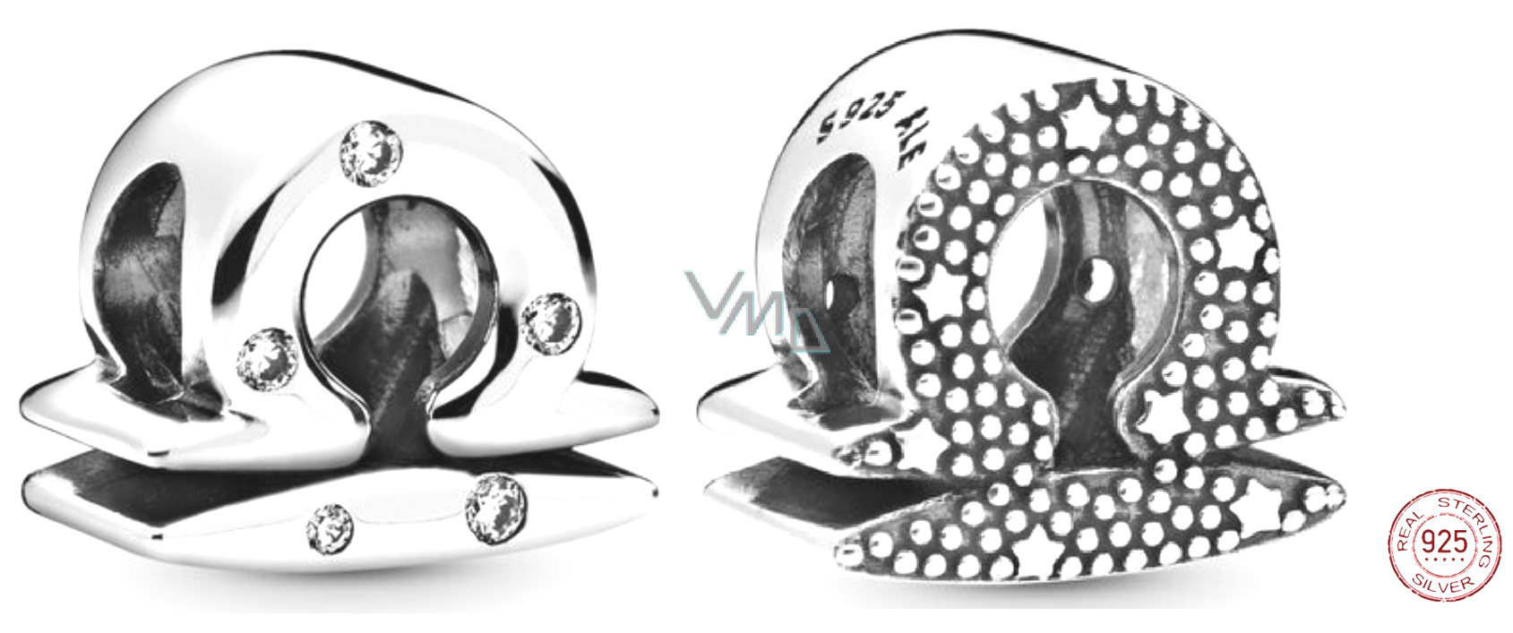 Charm Sterlingové stříbro 925 znamení zvěrokruhu Třpytivé Váhy, korálek na náramek