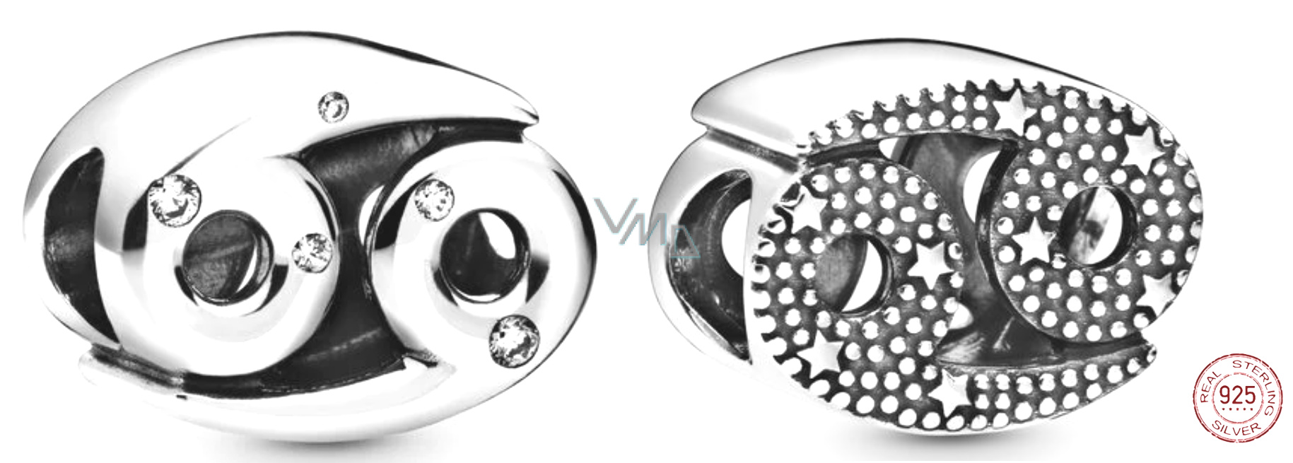 Charm Sterlingové stříbro 925 znamení zvěrokruhu Třpytivý Rak, korálek na náramek