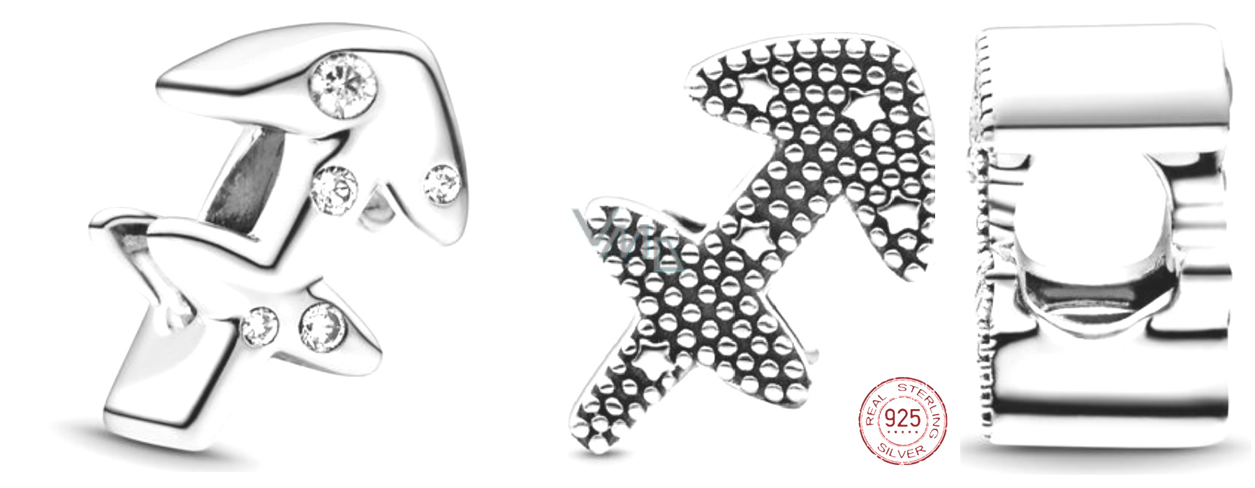 Charm Sterlingové stříbro 925 znamení zvěrokruhu Třpytivý Střelec, korálek na náramek