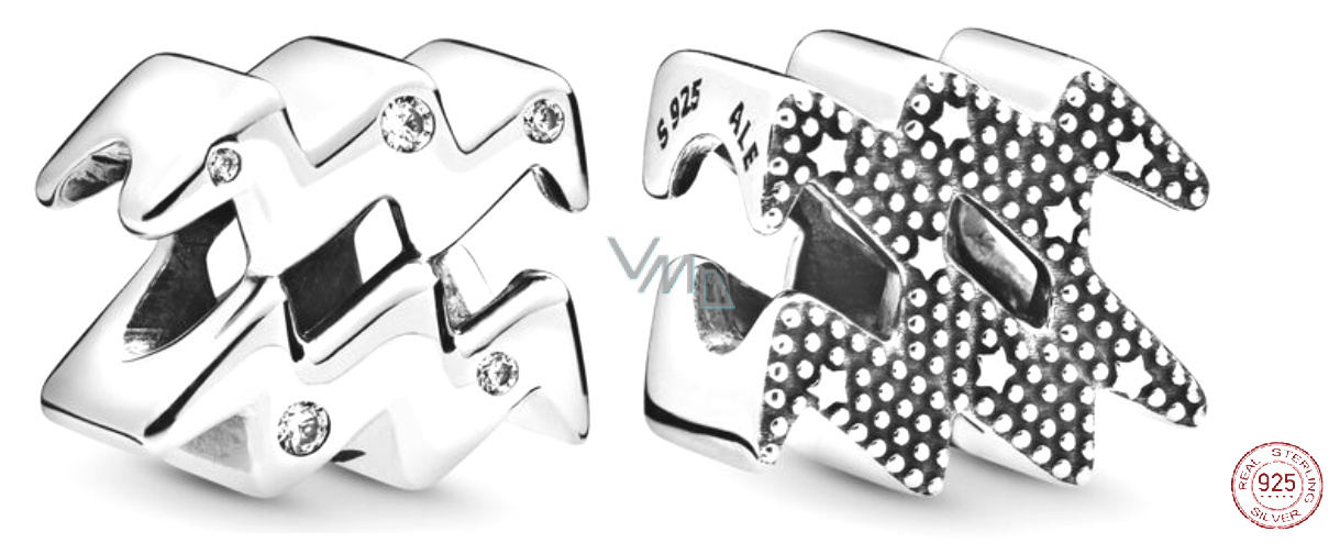 Charm Sterlingové stříbro 925 znamení zvěrokruhu Třpytivý Vodnář, korálek na náramek