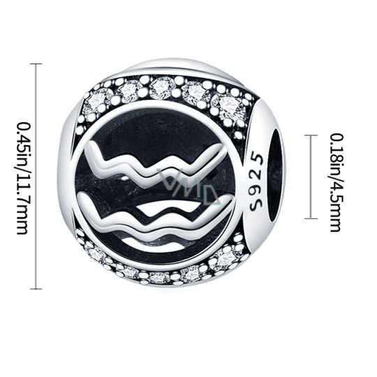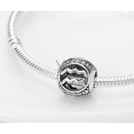 Charm Sterlingové stříbro 925 znamení zvěrokruhu Vodnář + zirkony, korálek na náramek