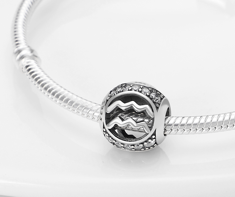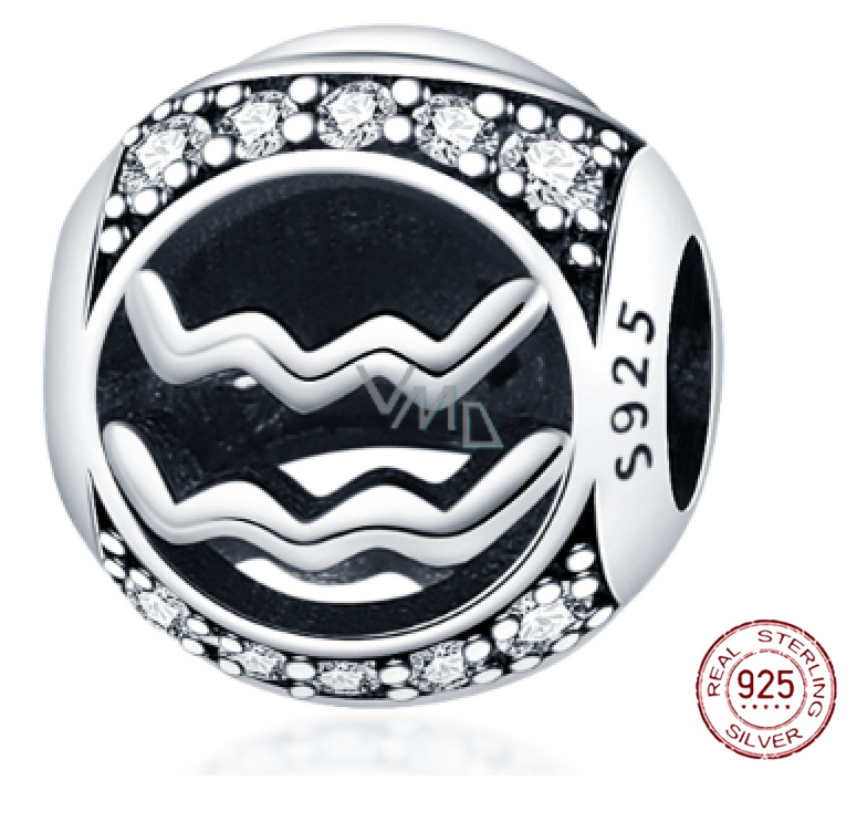 Charm Sterlingové stříbro 925 znamení zvěrokruhu Vodnář + zirkony, korálek na náramek