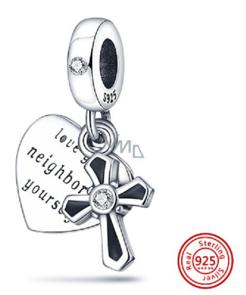 Charm Sterlingové stříbro 925 Náboženská kouzla Kříž a jmenovka 2v1, přívěsek na náramek